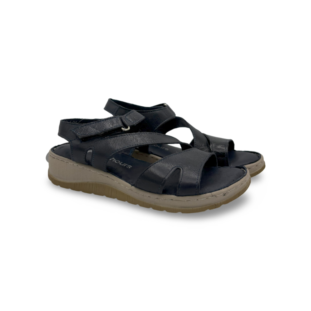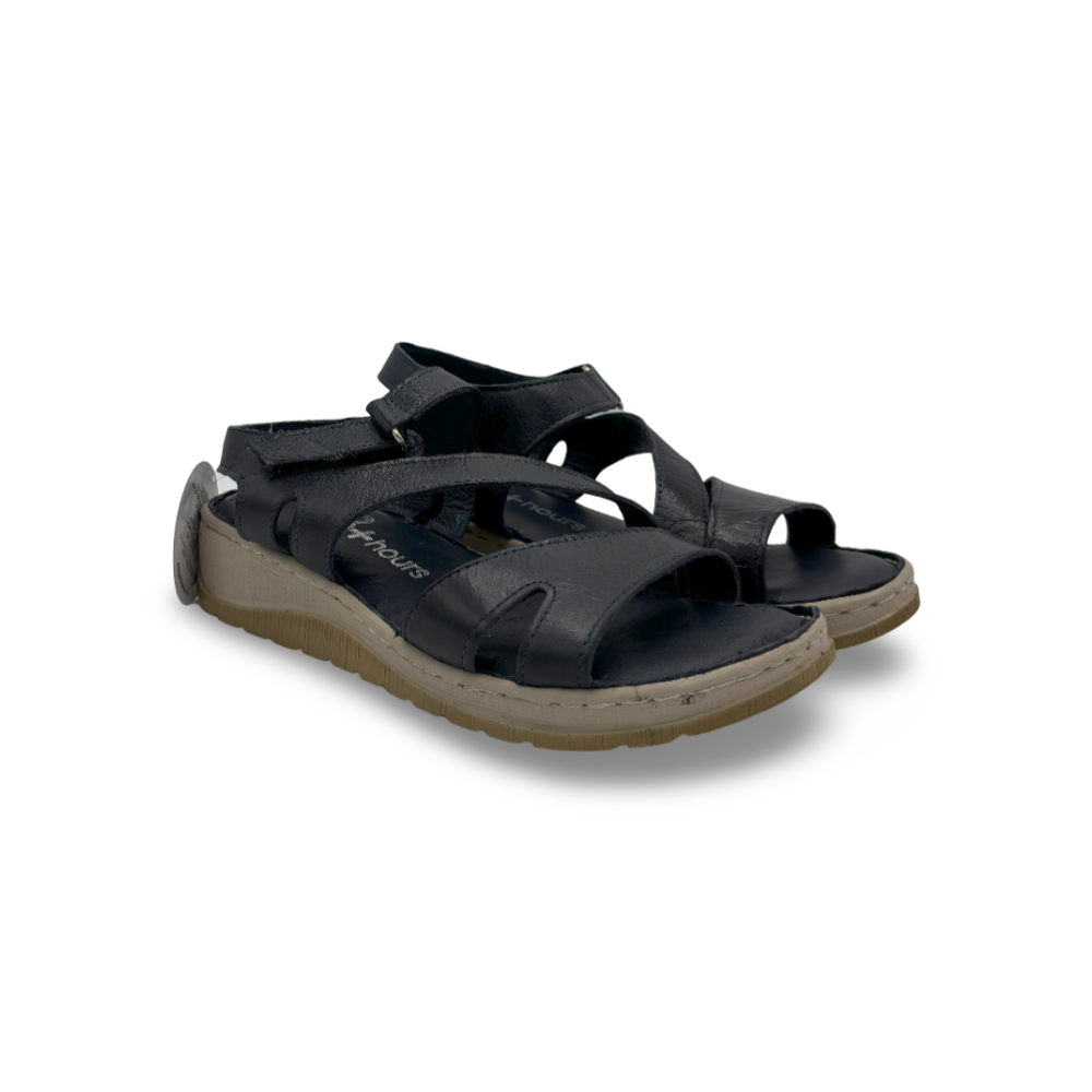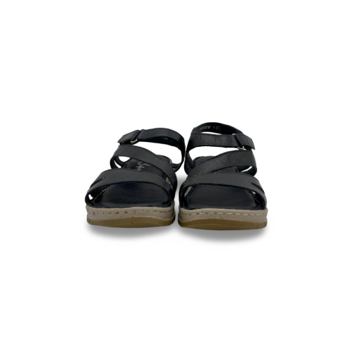 La suela flexible y ligera proporciona una pisada estable y cómoda, ideal para largas jornadas o paseos veraniegos. Su color negro clásico combina fácilmente con cualquier outfit, desde looks casuales hasta conjuntos más arreglados.