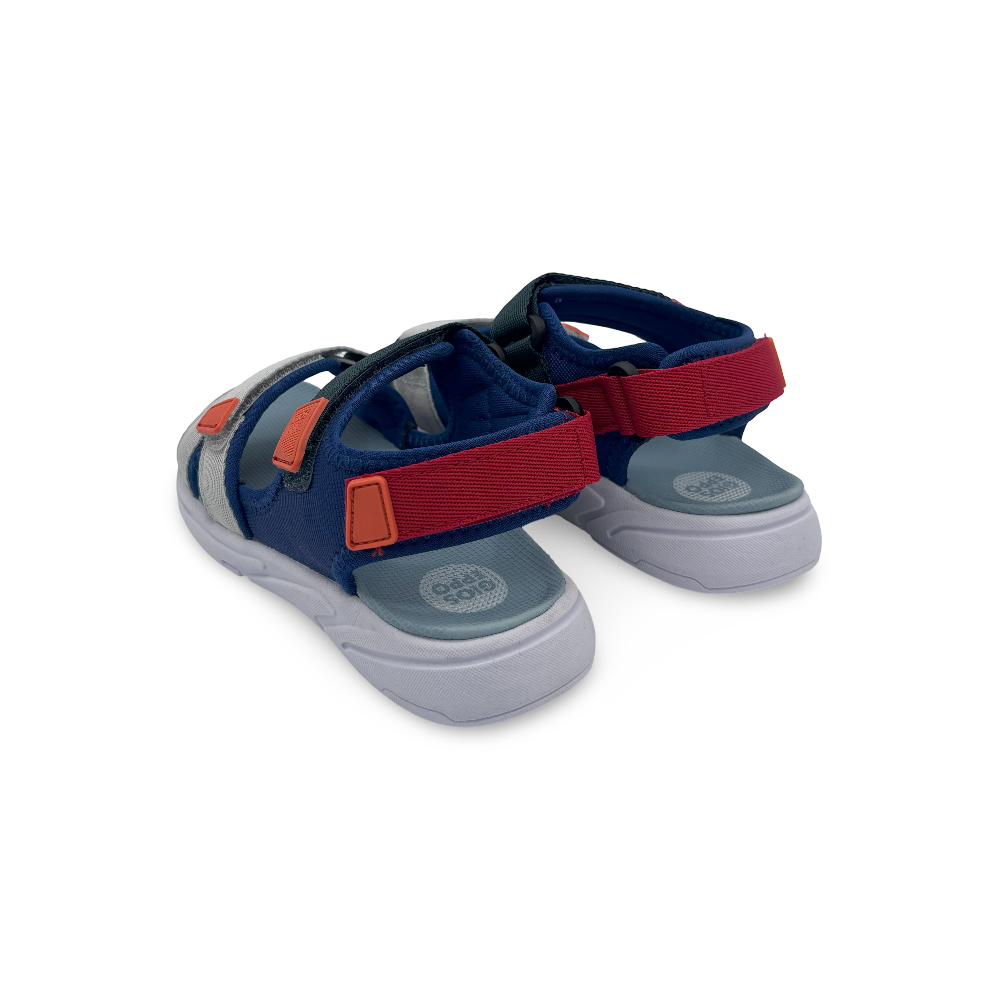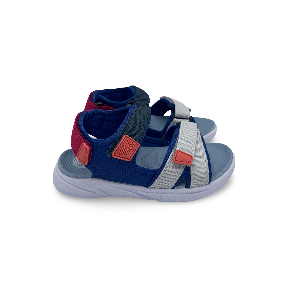 ¡Diversión y comodidad en cada paso! Estas sandalias deportivas de niño de Gioseppo en tonos azul marino y gris combinan diseño moderno y confort. Fabricadas con materiales ligeros y flexibles, incorporan dobles tiras ajustables con velcro que aseguran un ajuste perfecto, además de suela ligera que facilita la pisada. Su interior acolchado cuida los pies más inquietos, ideal para juegos, paseos y días de verano.