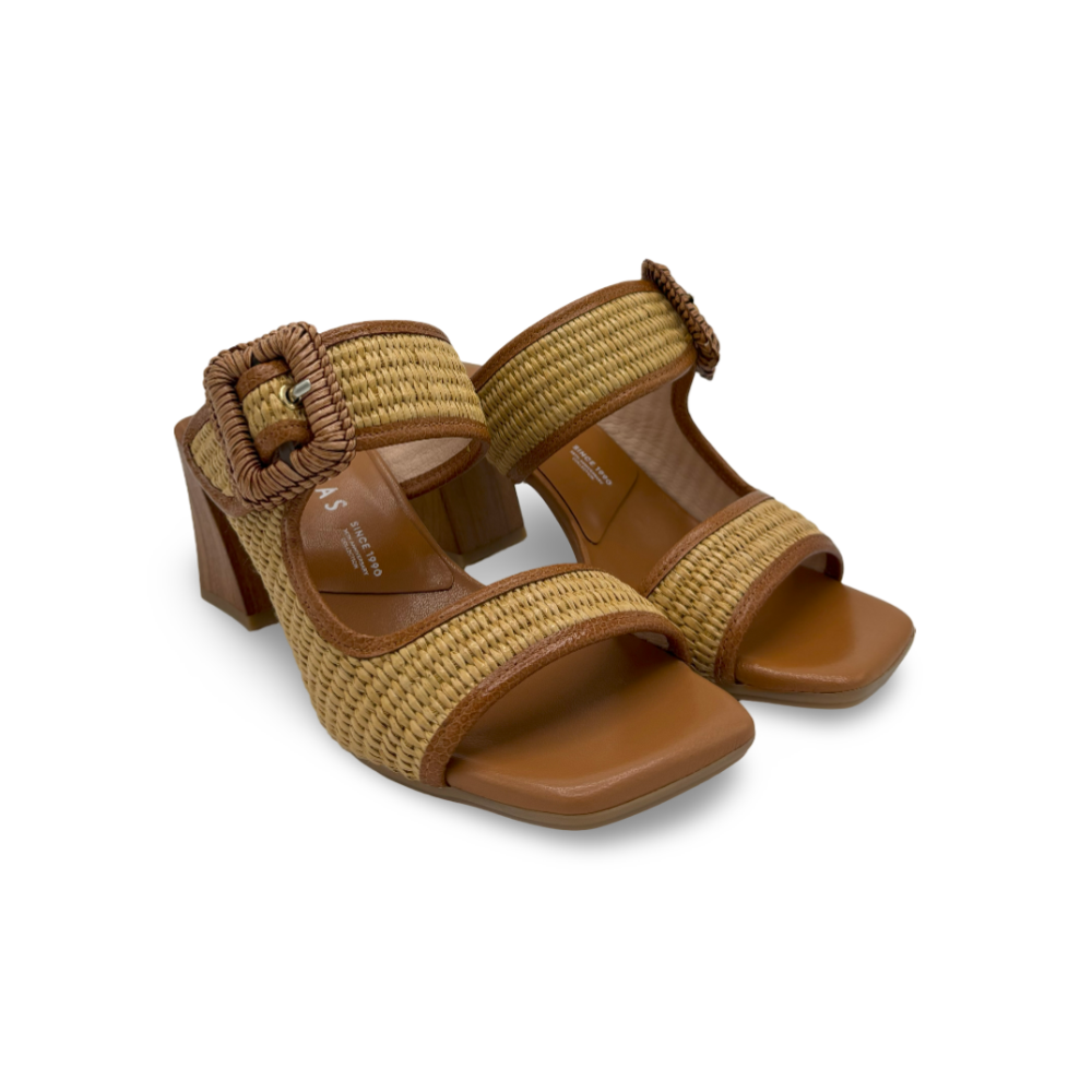 Diseñada para mujeres que buscan comodidad, estilo y un toque natural, esta sandalia destaca por su original combinación de rafia trenzada y piel, junto a un elegante tacón ancho efecto madera que aporta estabilidad y tendencia.