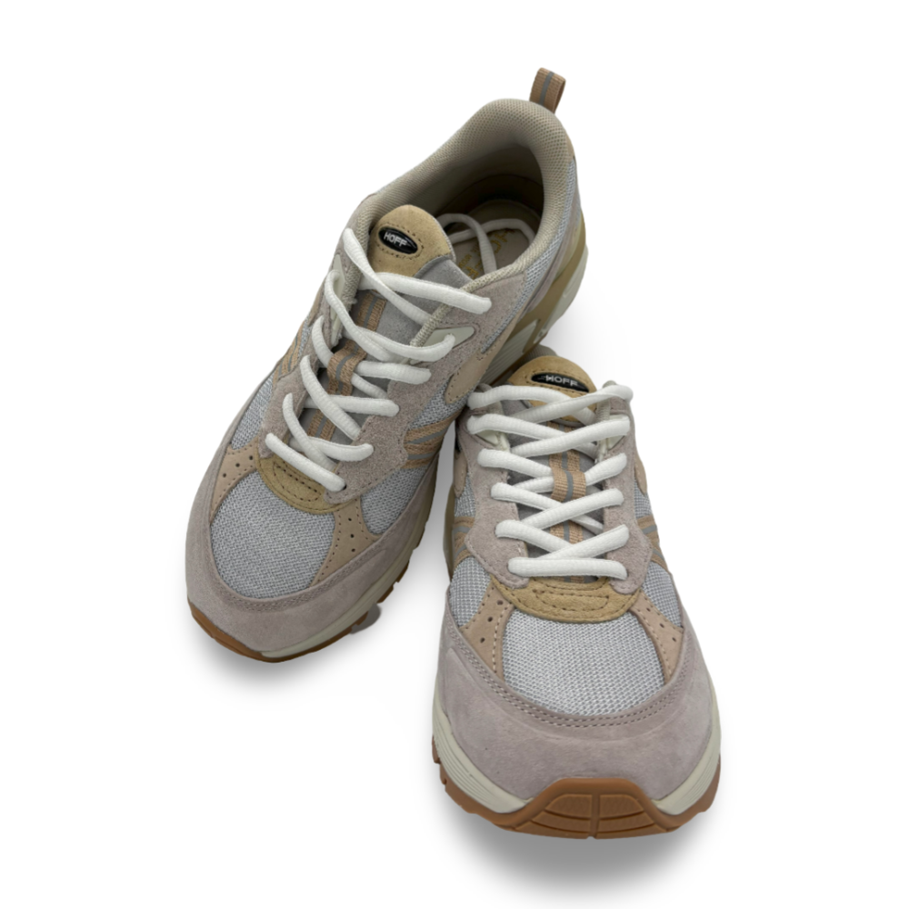 Descubre las deportivas HOFF California para mujer, un modelo que combina diseño retro y materiales premium para aportar estilo y comodidad en cada paso. Su mezcla de piel serraje, nobuk y textil técnico en tonos suaves aporta un look moderno y urbano, perfecto tanto para tus outfits diarios como para ocasiones más especiales.