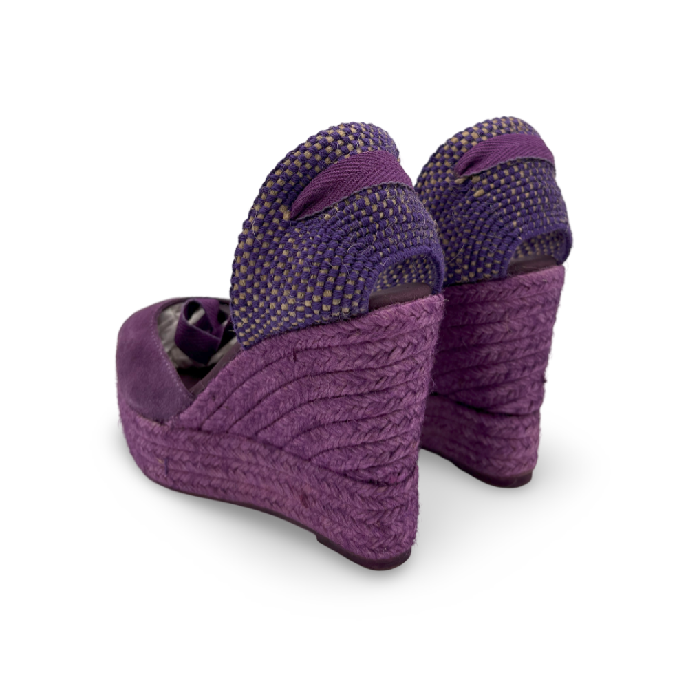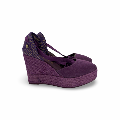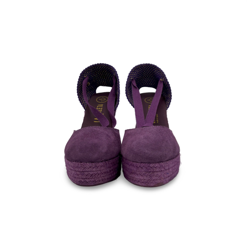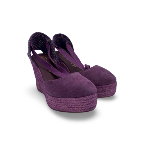 En Mesa Calzados, tu zapatería de confianza en Montoro, te presentamos estas espectaculares cuñas en tono violeta intenso, perfectas para aportar un aire sofisticado y vibrante a cualquier look estival.