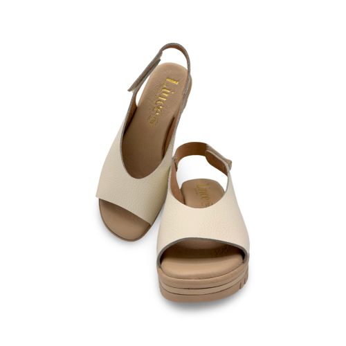 Descubre estas sandalias de cuña en piel blanca ideales para elevar tu look diario con un toque actual y femenino. Su diseño con pala amplia y talón descubierto aporta frescura y sujeción, mientras que el cierre de velcro facilita un ajuste perfecto. La cuña media en tono nude y la suela dentada garantizan estabilidad y comodidad en cada paso, perfecta para largas jornadas o para tus paseos veraniegos.