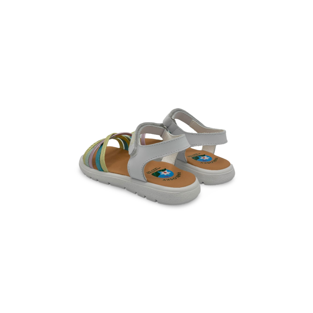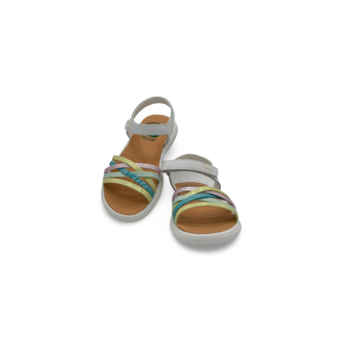 Dale color y diversión a los pasos de las peques con esta sandalia infantil de PABLOSKY. Confeccionada en piel y tiras multicolor de acabado metalizado, es perfecta para combinar con cualquier look veraniego. El cierre adherente facilita el ajuste y la autonomía de los niños, mientras que su piso ligero y flexible garantiza comodidad y seguridad en cada paso.