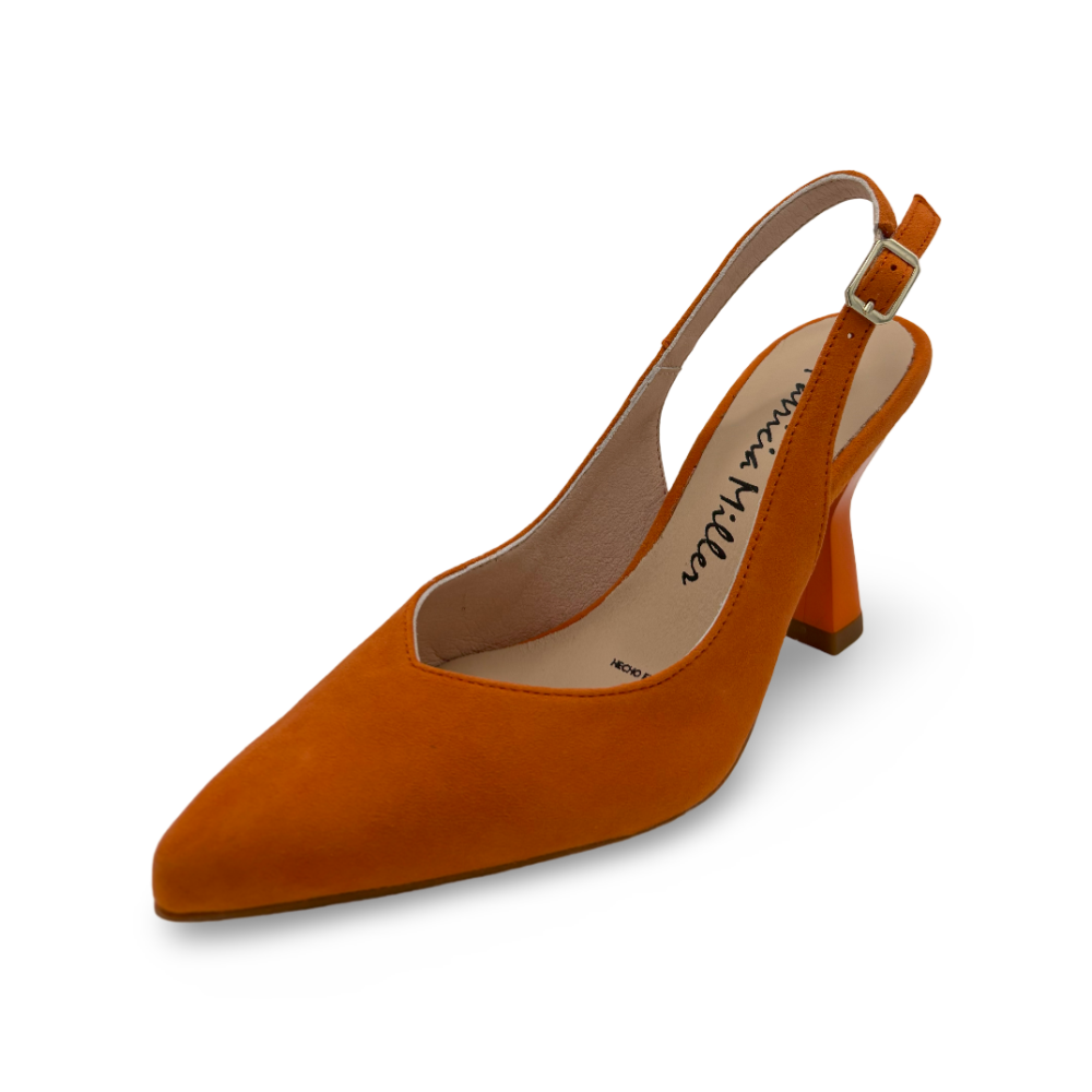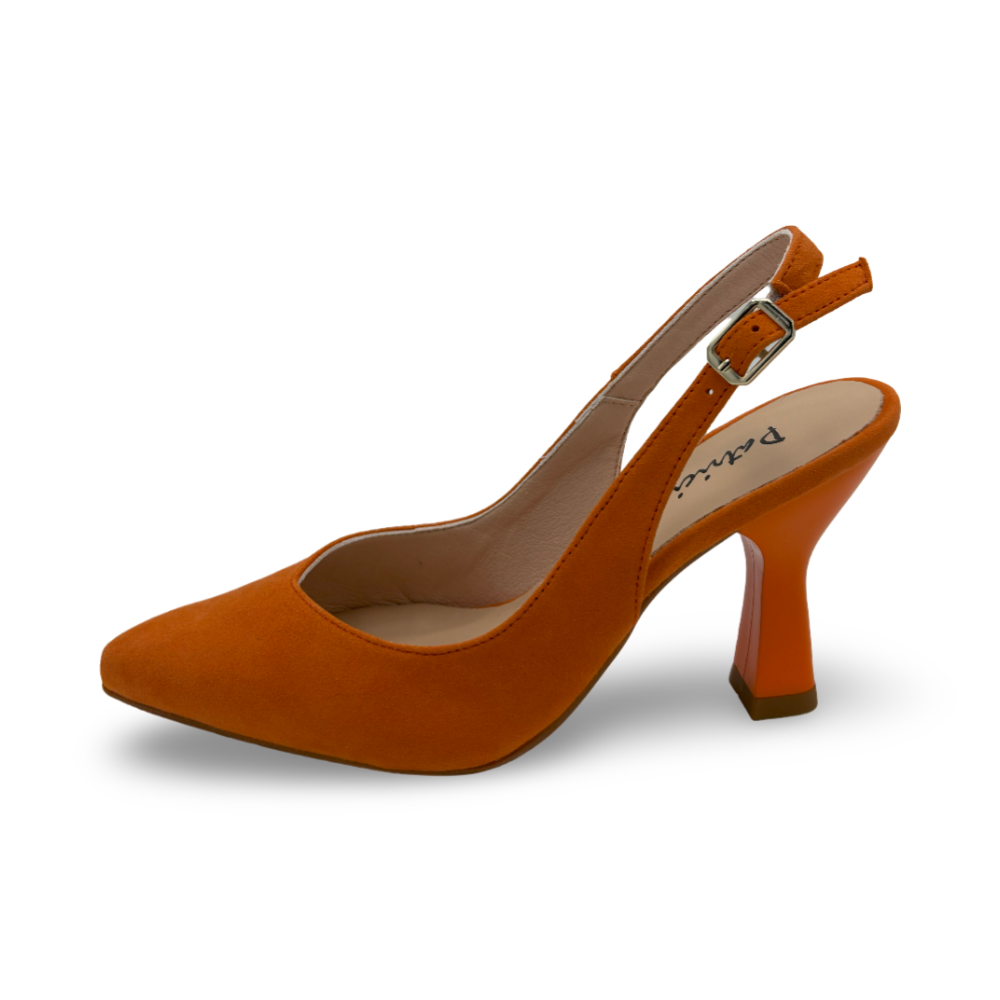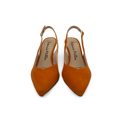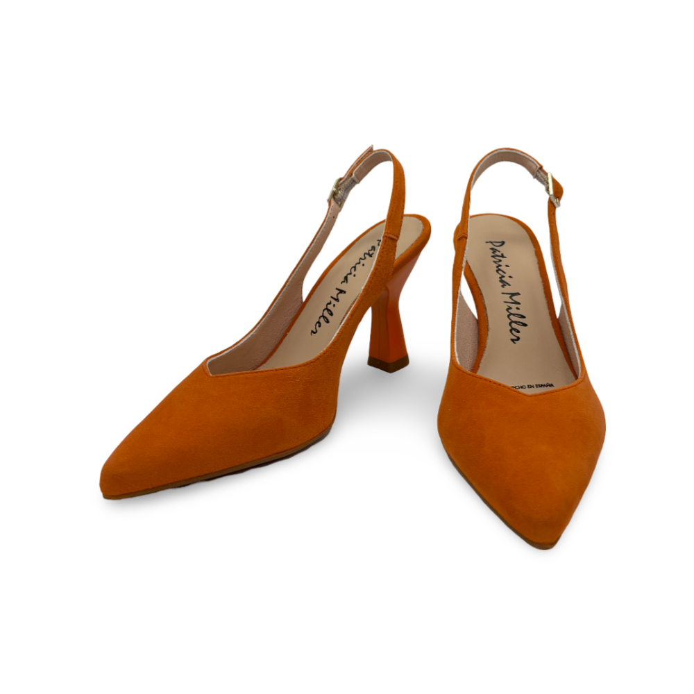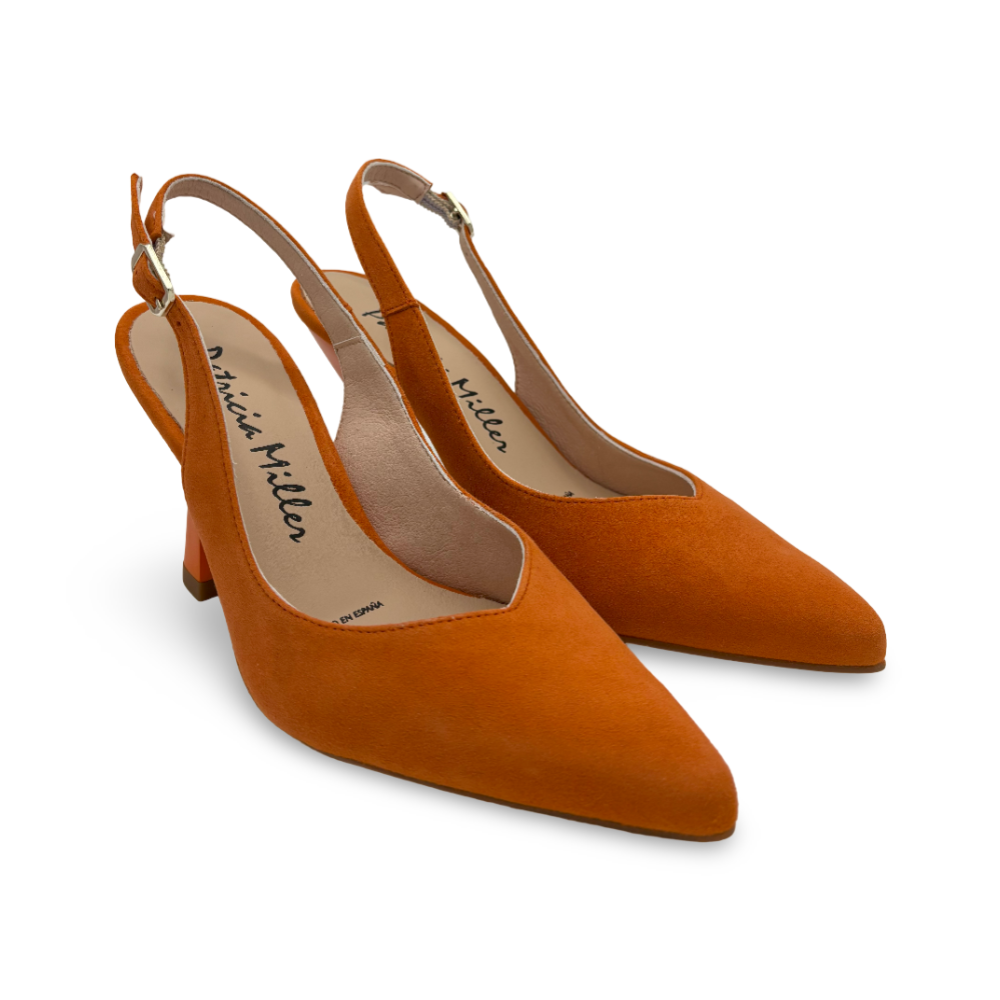 En Mesa Calzados, tu zapatería de confianza en Montoro, te presentamos estos sofisticados zapatos de tacón slingback en color naranja de la firma Patricia Miller. Perfectos para añadir un toque vibrante y lleno de personalidad a tus looks de fiesta o eventos especiales.