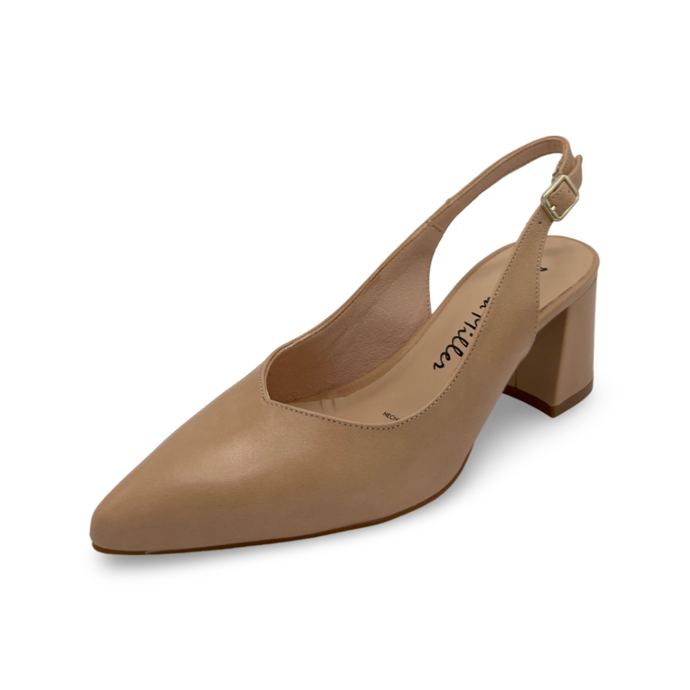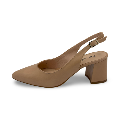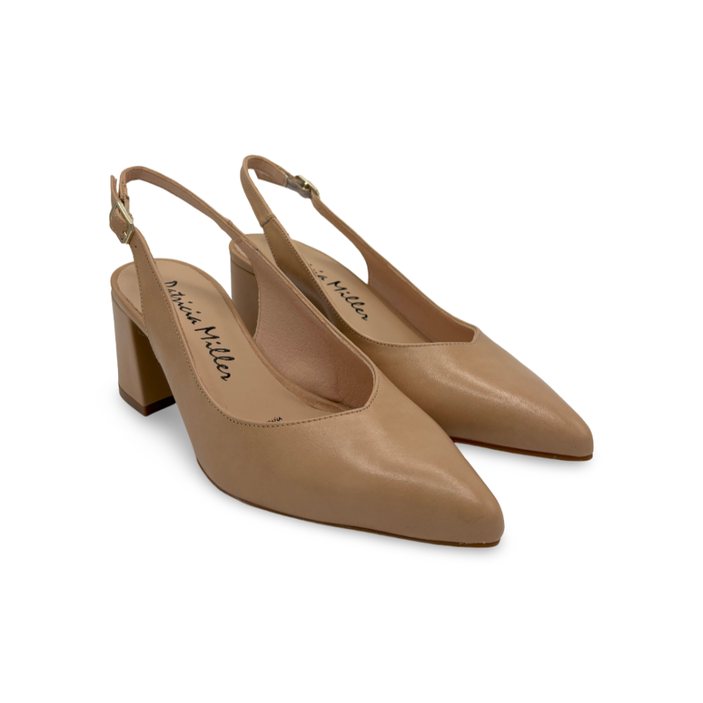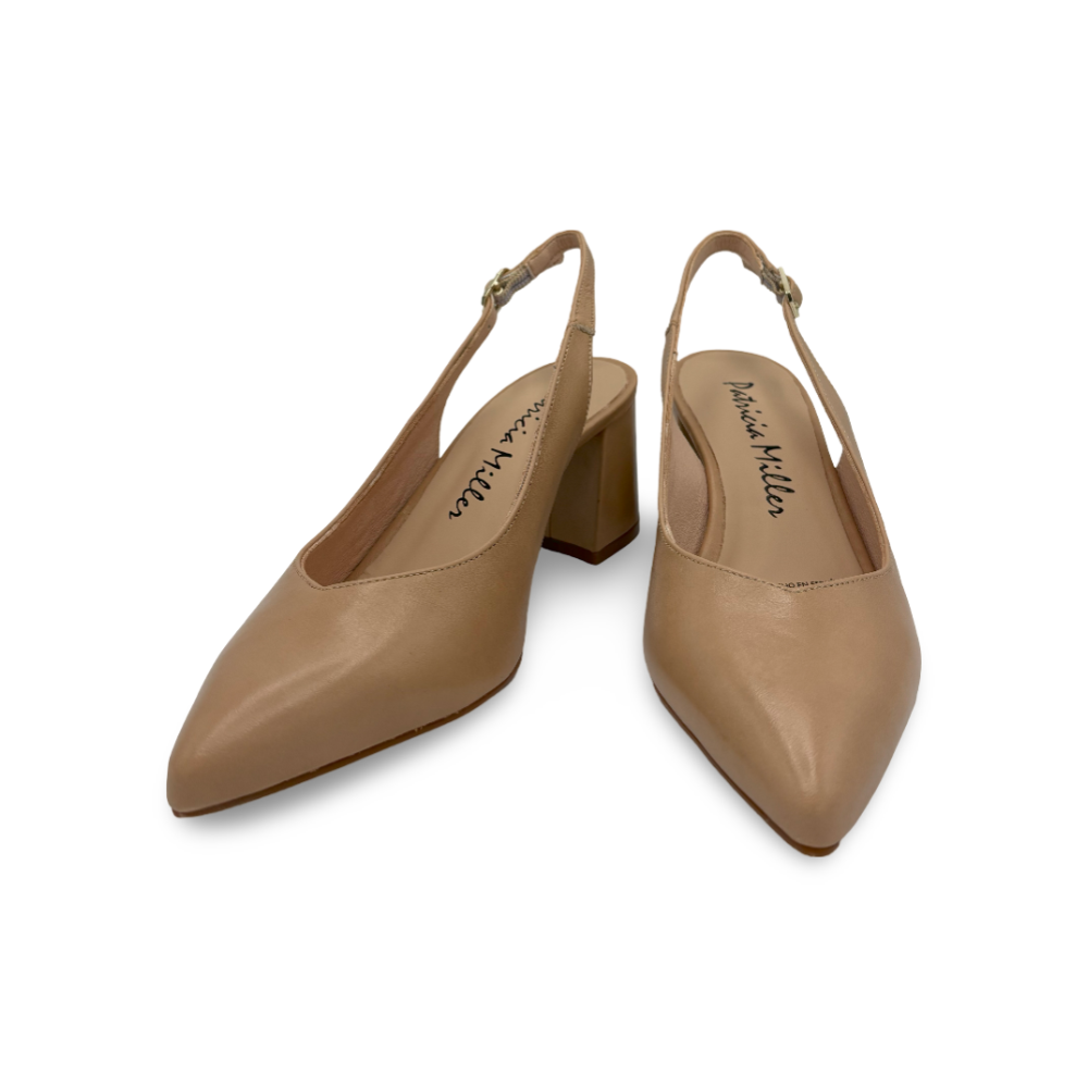 Si buscas un zapato elegante, versátil y cómodo, este zapato destalonado de Patricia Miller es perfecto para ti. Realizado en piel lisa beige de alta calidad, luce un diseño clásico con punta fina y tacón ancho medio que estiliza la figura sin renunciar a la comodidad.