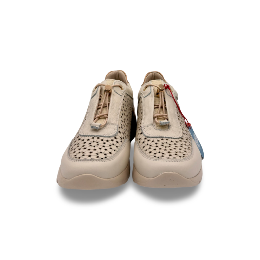 En Mesa Calzados, tu zapatería de confianza en Montoro, te presentamos estas deportivas perfectas para mujeres que buscan un calzado cómodo, ligero y lleno de estilo. Con un diseño calado que permite la transpiración y detalles en dorado, son el complemento ideal para tus looks casuales.
