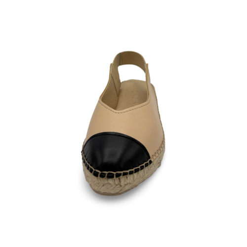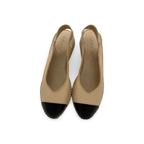 ¡Estilo clásico y comodidad en cada paso! Esta alpargata de Ramonciñas combina a la perfección la elegancia y la sencillez gracias a su diseño bicolor en piel beige con puntera negra. Un calzado versátil, perfecto tanto para looks informales como para outfits más sofisticados.