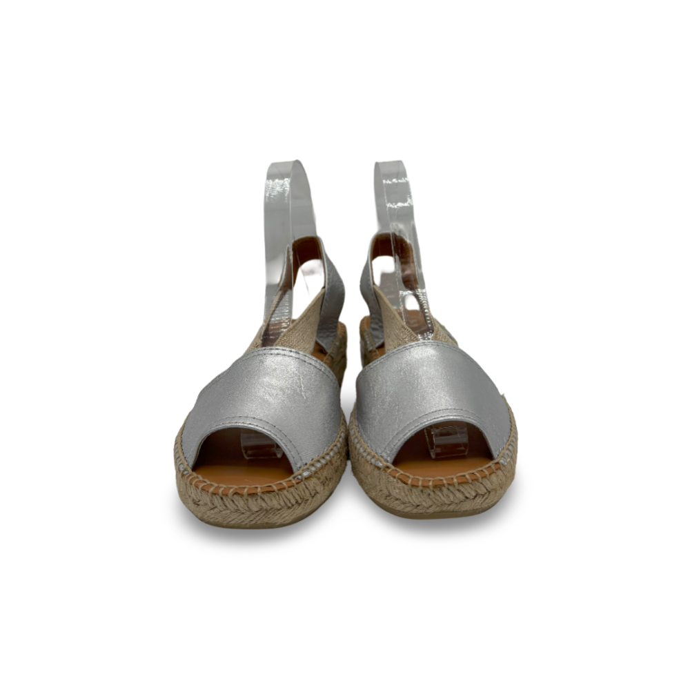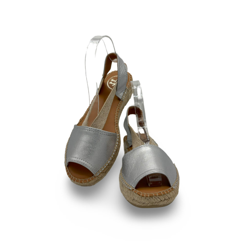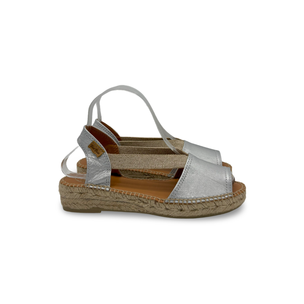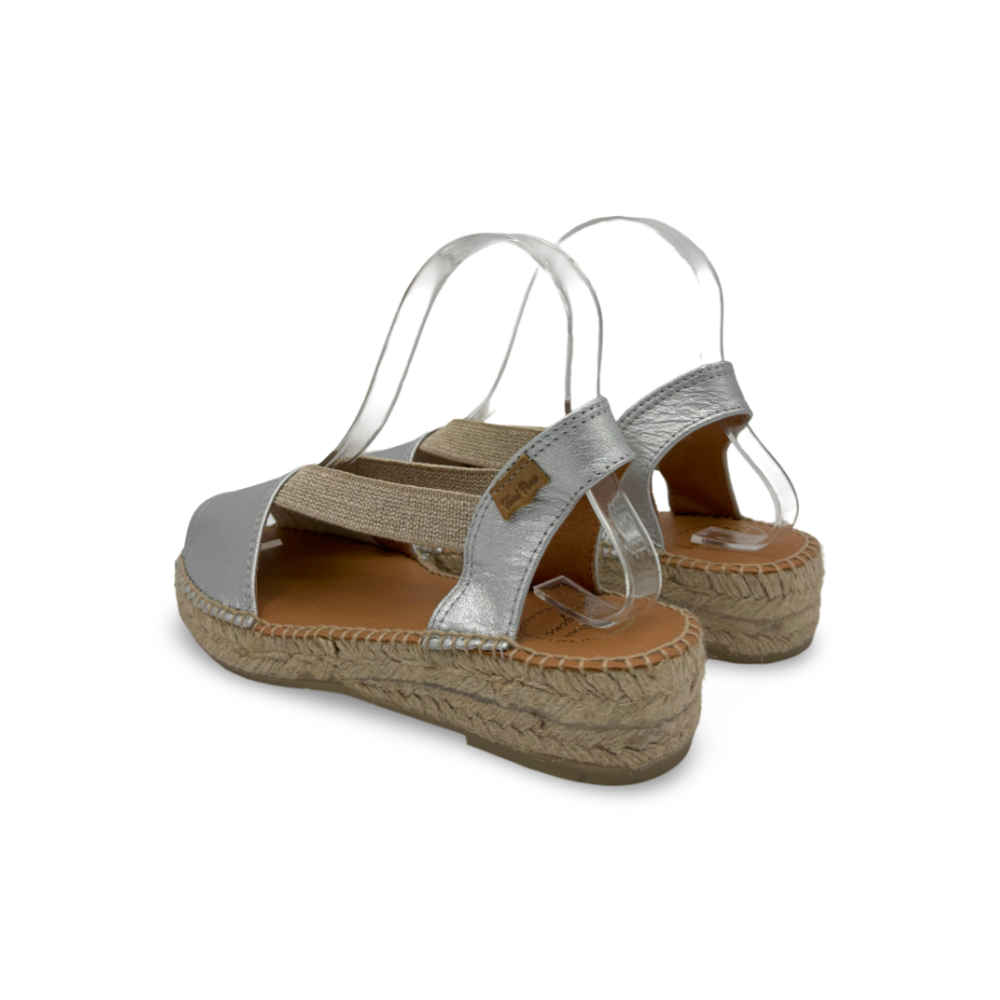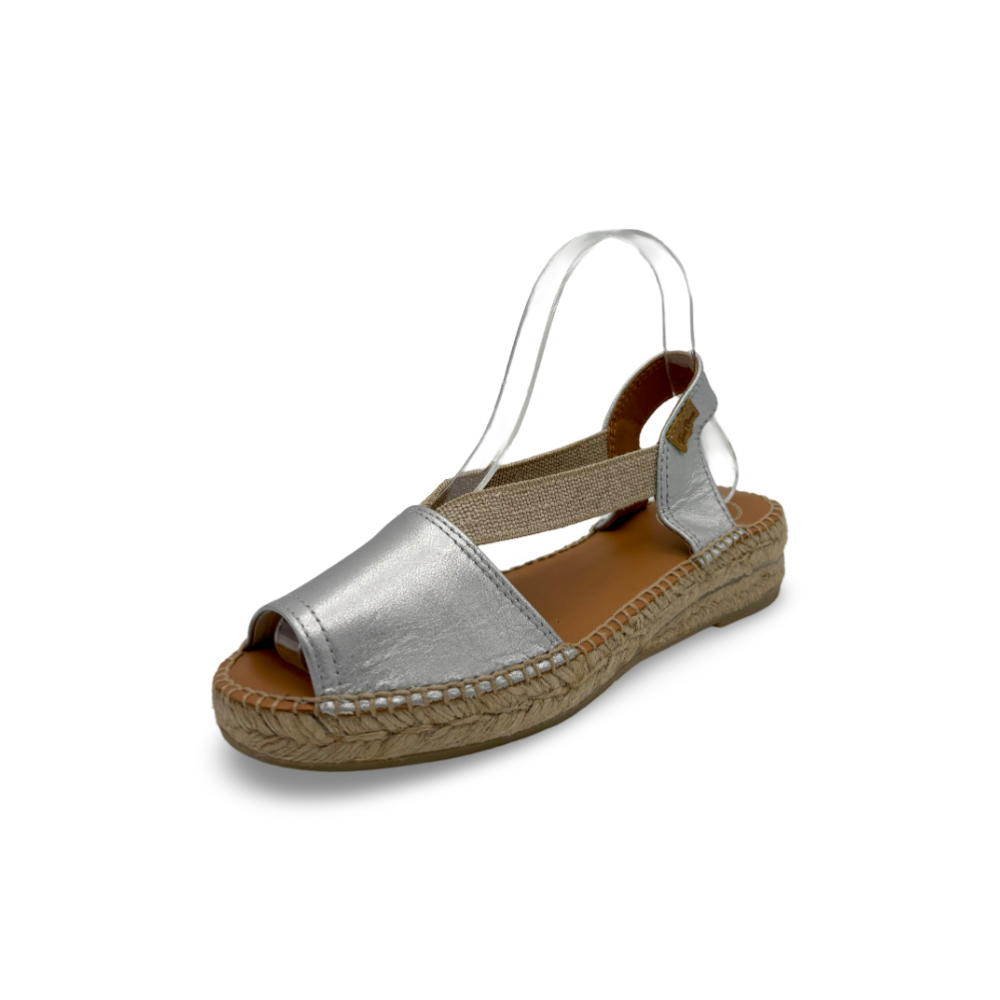 Las cuñas planas plata de TONI PONS combinan el confort tradicional de las alpargatas con un toque moderno y brillante. Su acabado metalizado en piel y la sujeción con bandas elásticas laterales aseguran un ajuste perfecto, fácil de poner y muy cómodo para el día a día.